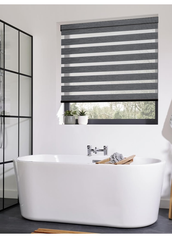 An attractive and innovative solution for many windows, our clever Day and Night blind system works using a looped piece of fabric so that when you raise or lower the blind you can make the alternating sheer and opaque stripes either align or disalign in varying amounts for amazing light control.