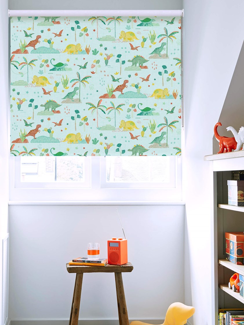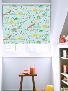 A beautiful pale blue background is adorned with darling dinosaur friends on this gorgeous blind! We love the watercolour style and smart burgundy and mustard tones that offer something different to the usual baby pink and blue kids' designs. Can you spot the cheeky little chameleon?