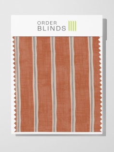 Revitalize your space with the Rowing Stripe Paprika Roman Blind, featuring a vibrant burnt orange hue and a simplistic stripe pattern. Adjacent dark grey and ivory stripes add a touch of modern sophistication, creating a bold and inviting ambiance in your decor.