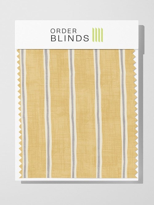 Elevate your space with the Rowing Stripe Sand Roman Blind, a bright and cheerful addition to your home decor. The springtime yellow backdrop is beautifully complemented by adjacent dark grey and ivory stripes, creating a vibrant and stylish look that brings a touch of sunshine to your room.