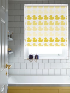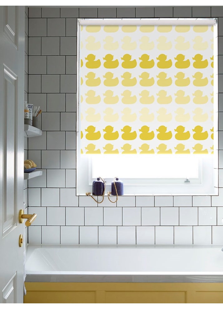 Go quackers at your window with this fun filled rubber duck pattern! In varying tones of cheerful yellow against a clean white background, this conversational design will be sure to add a joyful splash of colour to any bathroom.