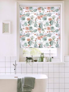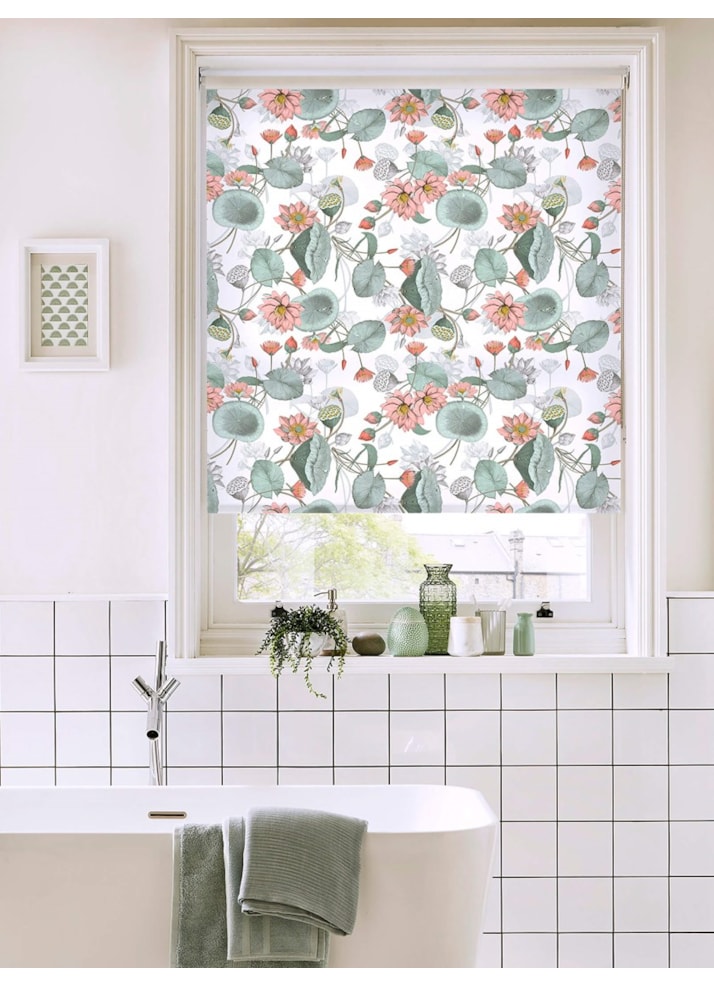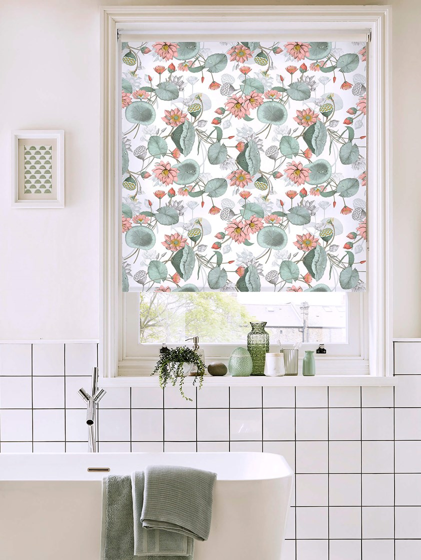A perfect addition to many rooms, waterlillies float accross a white background on this truly stunning blind. Despite the classic theme, this design is undeniably modern with it's fresh feel and calming colour palette of blush pinks and misty greens.