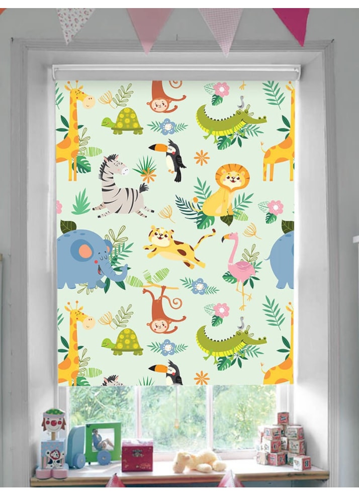 Fun and funky, it's no surprise that this design is one of our most popular! We love the friendly creatures hanging out on our Safari Party Cordless Roller Blind and we're sure you will too, it's the perfect way to add charm and style to your little one's room.
