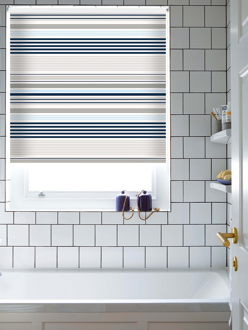 Add a splash of colour to your window with this fun, nautical style sailor stripe. With its bold lines & striking colour palette you can be sure this will create a focal point within your space. Available in two colourways including tones of blue & warm grey or bright red alongside navy, grey & taupe.