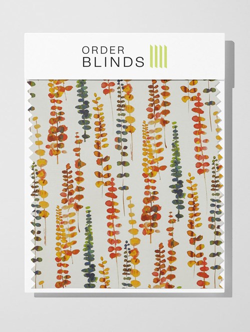 Transform your decor with the Santa Maria Tango Roman Blind, featuring a watercolour-inspired pattern of eucalyptus-inspired flowers in autumnal oranges and festive yellows, adding a touch of artistic elegance and warmth to your living space. This window treatment seamlessly marries style and privacy, creating a vibrant and inviting ambiance with its captivating floral design.