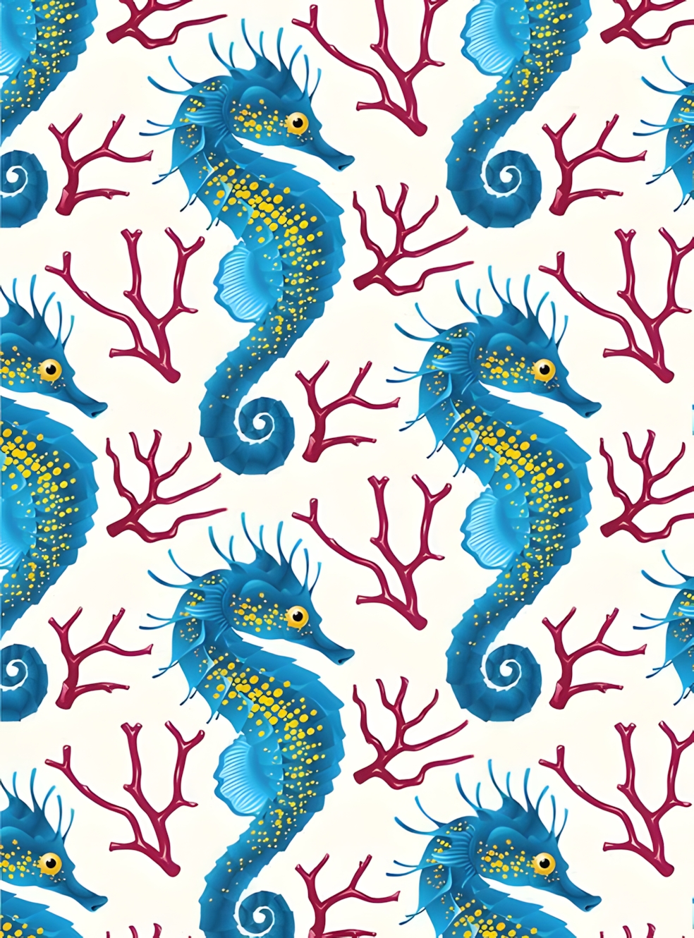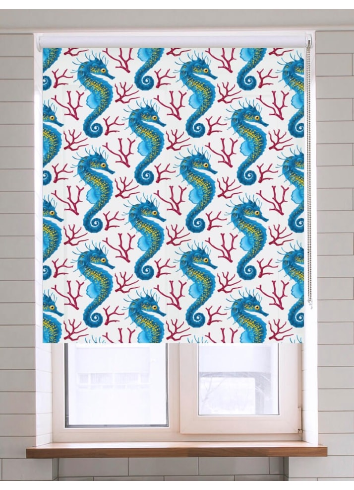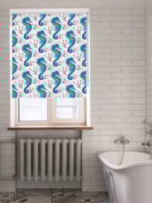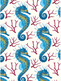 Bold and stylish, this delightful design of seahorses and coral is an eye catching addition to any room. The blue and red colour palette looks great with white tiles and chrome hardware.