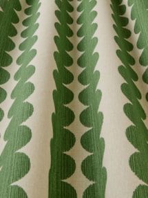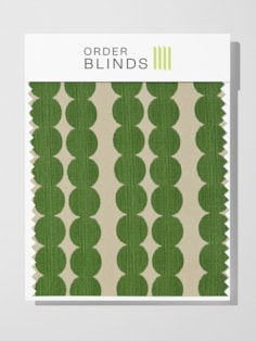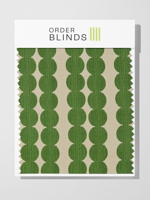 Elevate your home decor with our Segments Emerald Roman Blind. The modern beige backdrop is adorned with striking jungle green circles, creating a captivating and contemporary design.