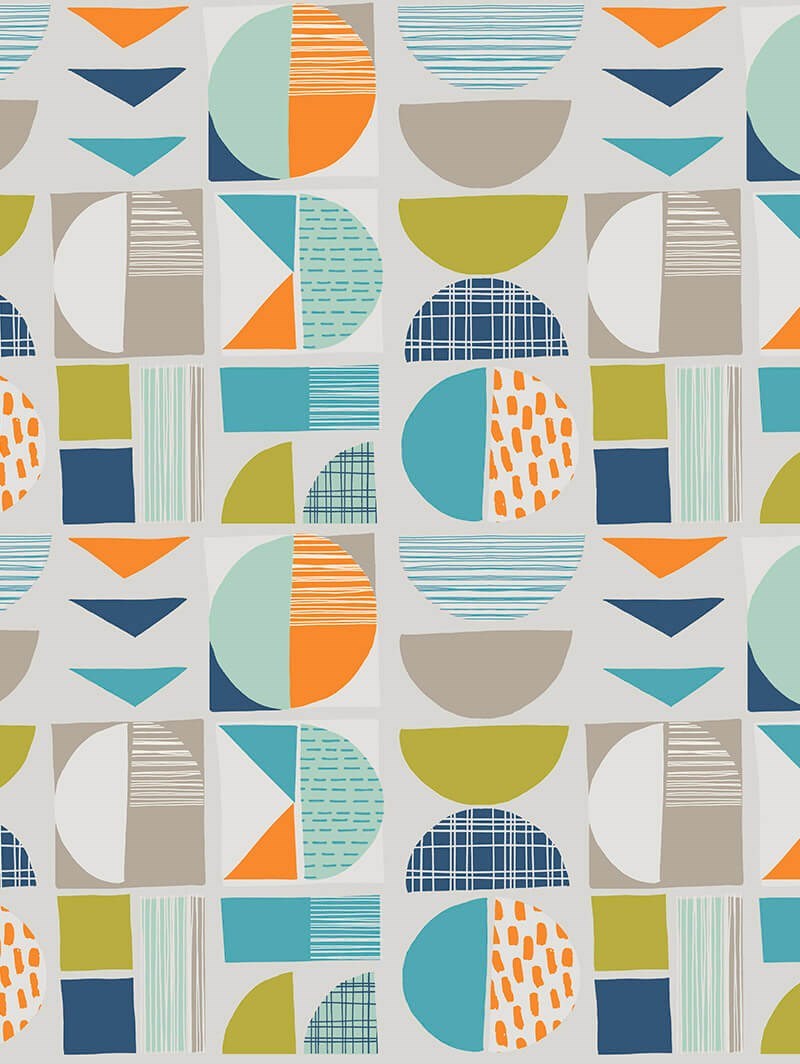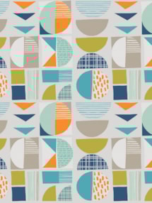 A vibrant and cheerful design, this charming geometric design is given a fresh, modern feel with its palette of bold oranges, mustardy limes and cooling blues against a chic pale grey.