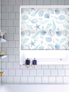 Add a lovely seaside theme to your bathroom with this fresh, airy design. The pale blue colour palette is peaceful and calm and the motifs of shells, starfish and seaweed will never go out of style.
