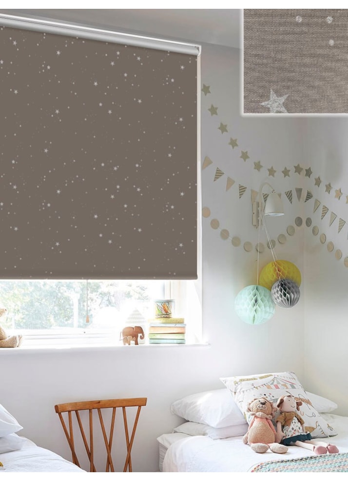A truly stunning option for a stylish child's room, the textured mid grey base of this blind is adorned with metallic silver stars for an added touch of magic. If you're looking to create a comforting, wonderous room for your little one (or for you!) this high end heavyweight fabric is an ideal choice.