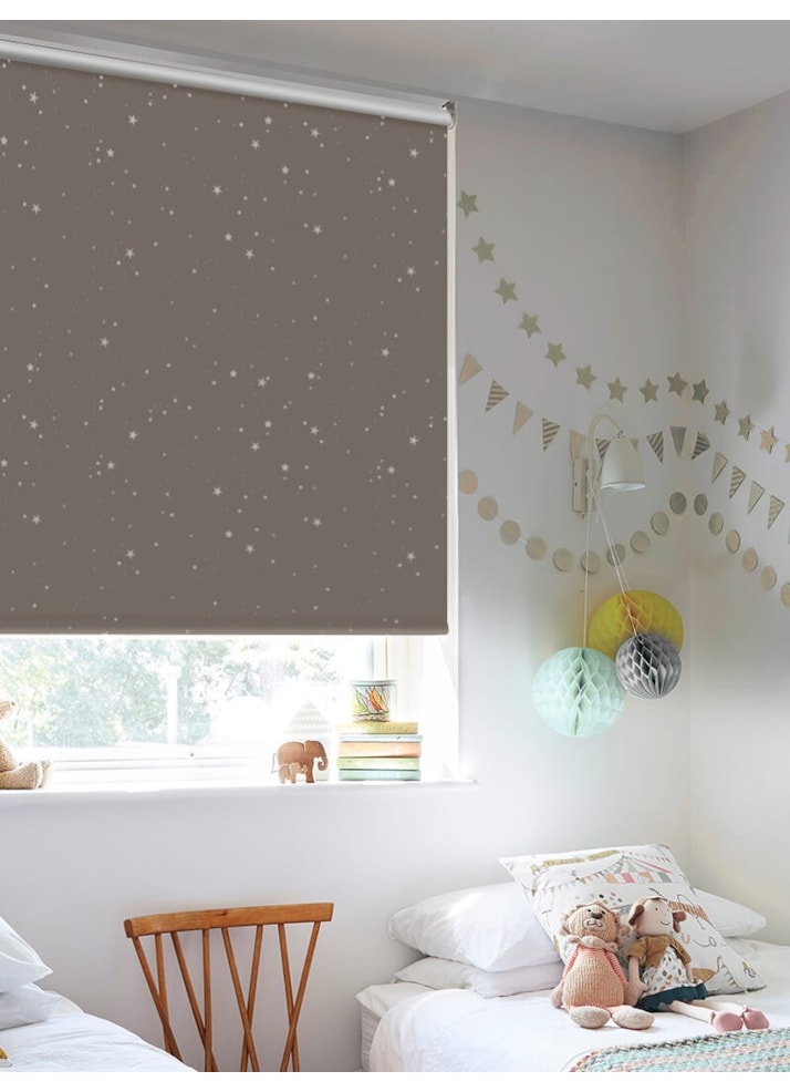A truly stunning option for a stylish child's room, the textured mid grey base of this blind is adorned with metallic silver stars for an added touch of magic. If you're looking to create a comforting, wonderous room for your little one (or for you!) this high end heavyweight fabric is an ideal choice.
