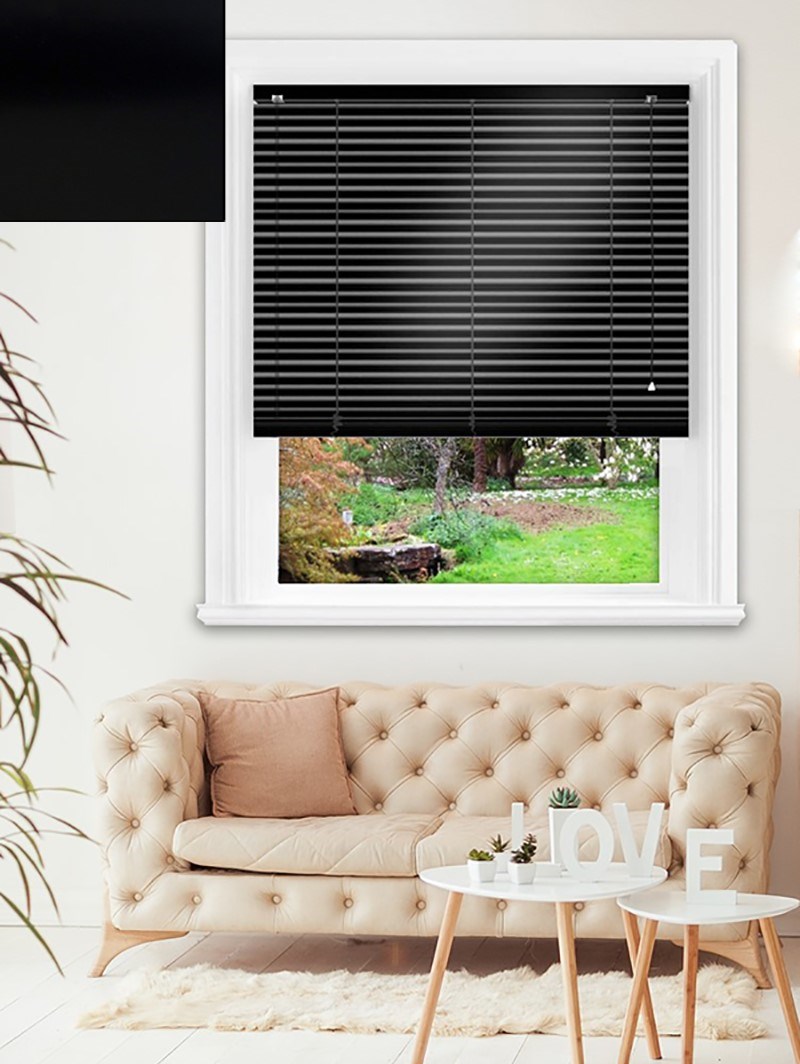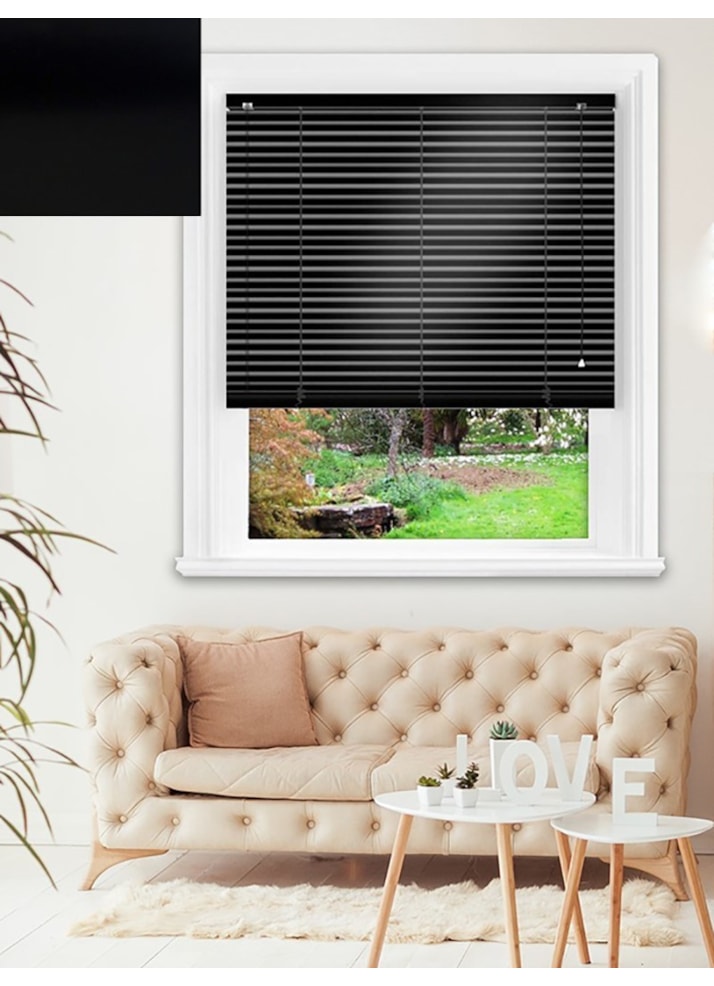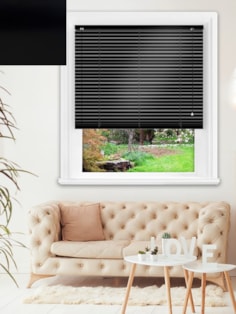 The sleek and stylish finish of our Simplicity Black Aluminium Venetian Blind provides a bold and statement look to a modern or traditional home. This colour makes a pleasant contrast with off-white or cream walls, providing a cosy feel when fully closed, making it ideal for living rooms or bedrooms.