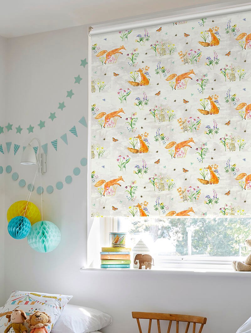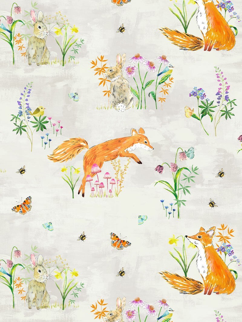 This whimsical woodland pattern features adorable foxes frolicking amongst the flora and fauna of the forest during spring time. Available in two different background options which include a soft natural colour or a blush pink, this adorable design is sure to add a fun, cheerful feel to your child’s bedroom.