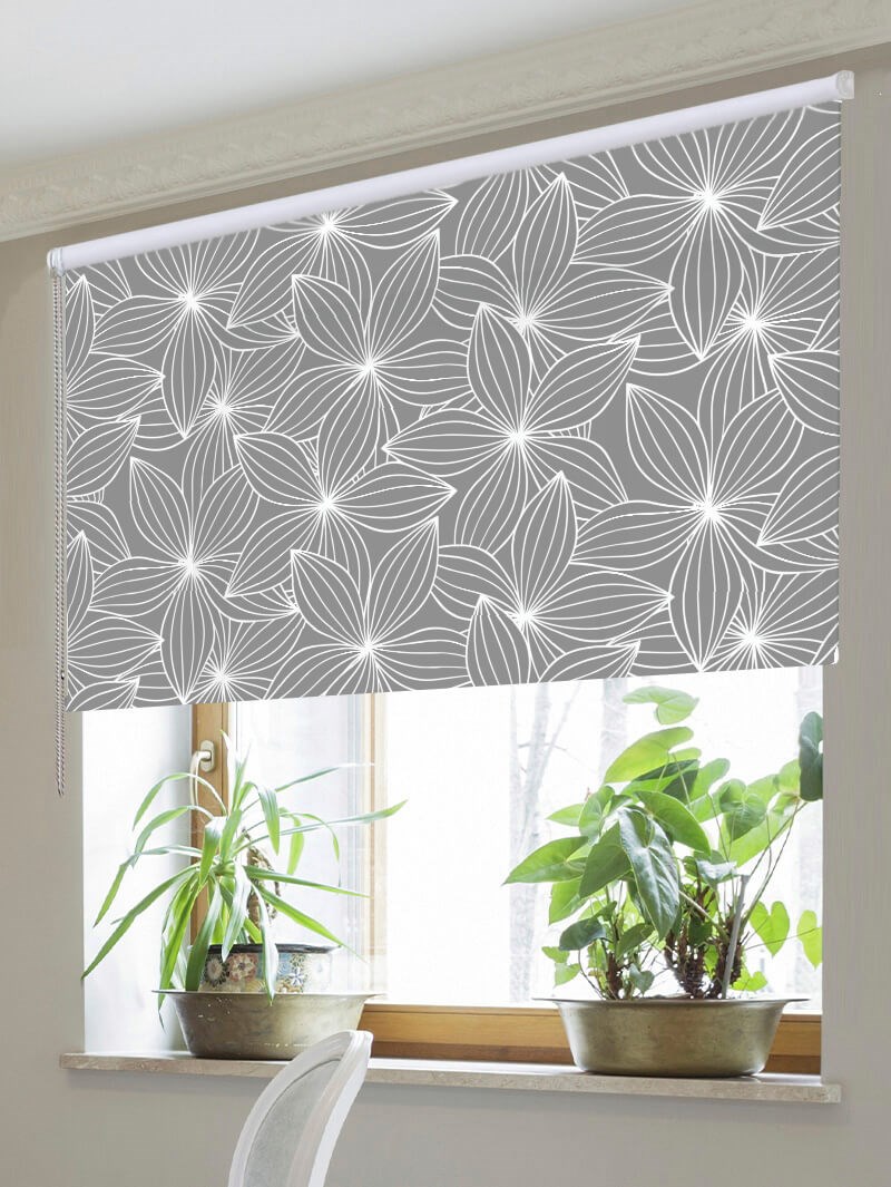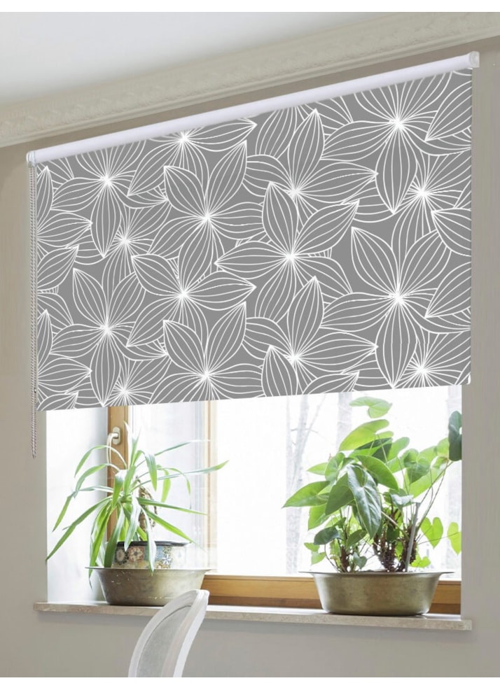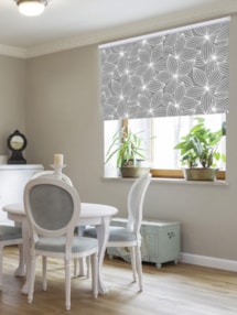 A floral design with a chic modern twist, this grey and white blind is a lovely addition to any room.