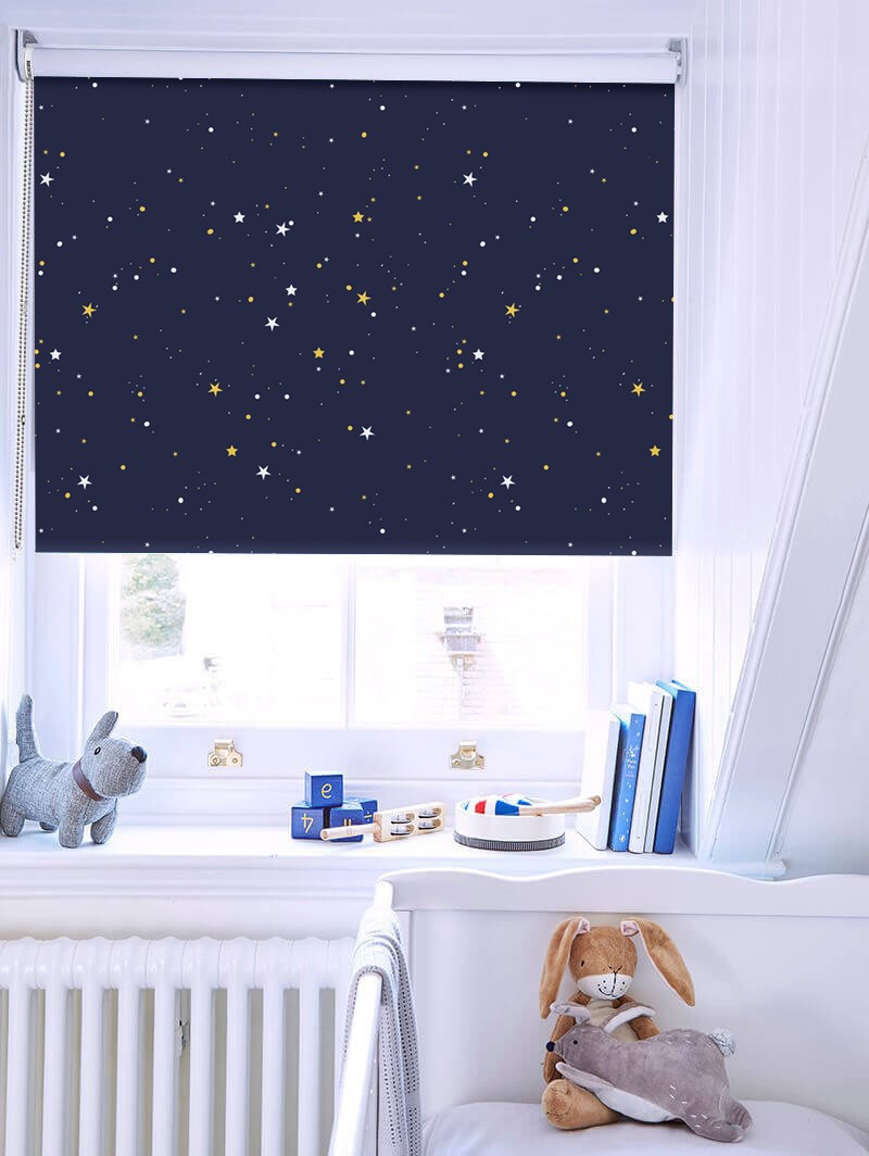 Starry Night Navy Blue Blackout Childrens Roller Blind