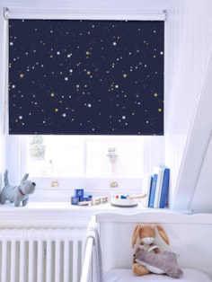 The perfect choice for a child's bedroom or an eye catching addition to a living room or bathroom, our Starry Night design is delightful to look at as well as practical. It's blackout nature makes it ideal for a bedroom or rooms where total privacy or glare reduction are required.