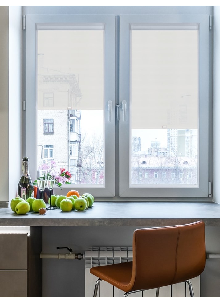 No drilling required for installation. Please note, these blinds are suitable only for uPVC windows with rubber beading, as the brackets slide neatly between the glass pane and the beading. They are not suitable for wooden or sash windows due to the cassette depth of 4.5cm.