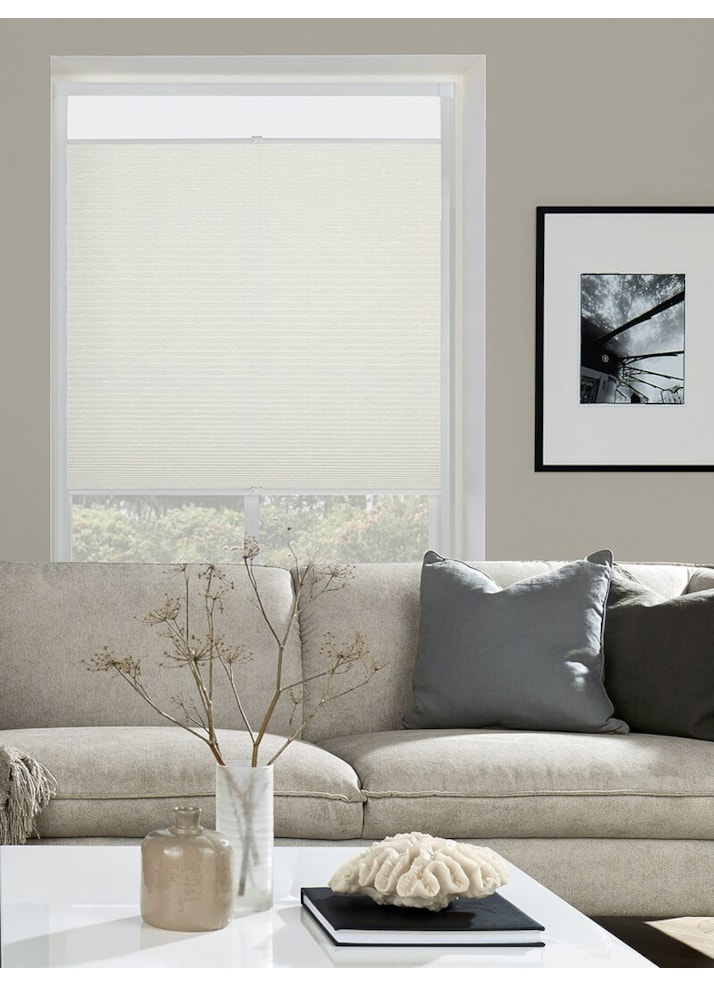 A chic off white, almost pale grey blind that looks great in any space, this is the ultimate choice for versatility, especially as the double handle system allow you maximum adjustability and a 'top down bottom up' style. Move the top and bottom of the blind to any position you wish, depending on the amount of light and privacy you need at the time.