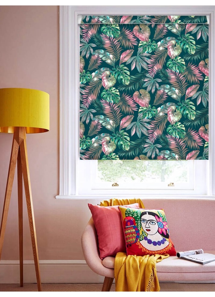 We simply adore this watercolour style tropical foliage print roller blind! The multiple tones of the leaves set it apart from other jungle leaf designs and contrasts beautifully with the plain background to draw the eye and add definition and on trend style to your room.
