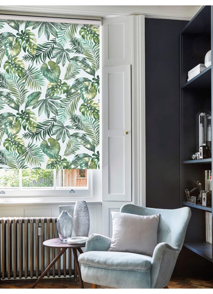 We simply adore this watercolour style tropical foliage print roller blind! The multiple tones of the leaves set it apart from other jungle leaf designs and contrasts beautifully with the plain background to draw the eye and add definition and on trend style to your room.
