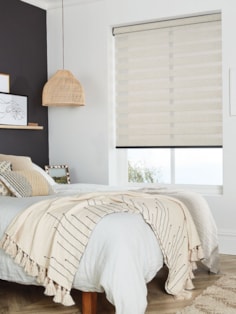An attractive and innovative solution for many windows, our clever Day and Night blind system works using a looped piece of fabric so that when you raise or lower the blind you can make the alternating sheer and opaque stripes either align or disalign in varying amounts for amazing light control.