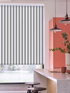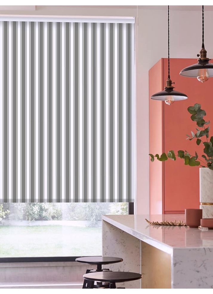 Truly a design classic, the chic ticking stripe is given a new lease of life on our beautiful made to measure roller blinds. A chic mid grey makes this a smart option for many spaces and design themes as it works well with so many other colours.