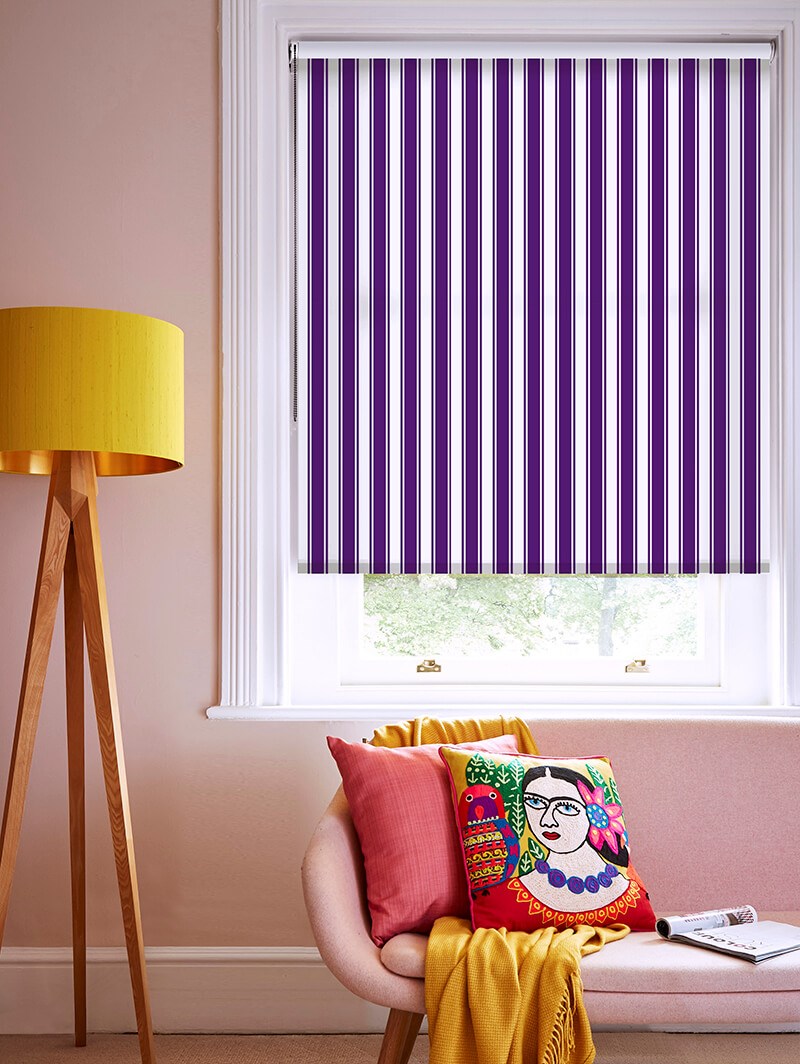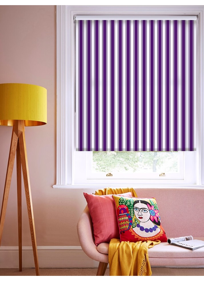 Truly a design classic, the chic ticking stripe is given a new lease of life on our beautiful made to measure roller blinds. A deep shade of regal purple adds an interesting twist to this traditional design and looks simply stunning alongside metallic accent pieces.