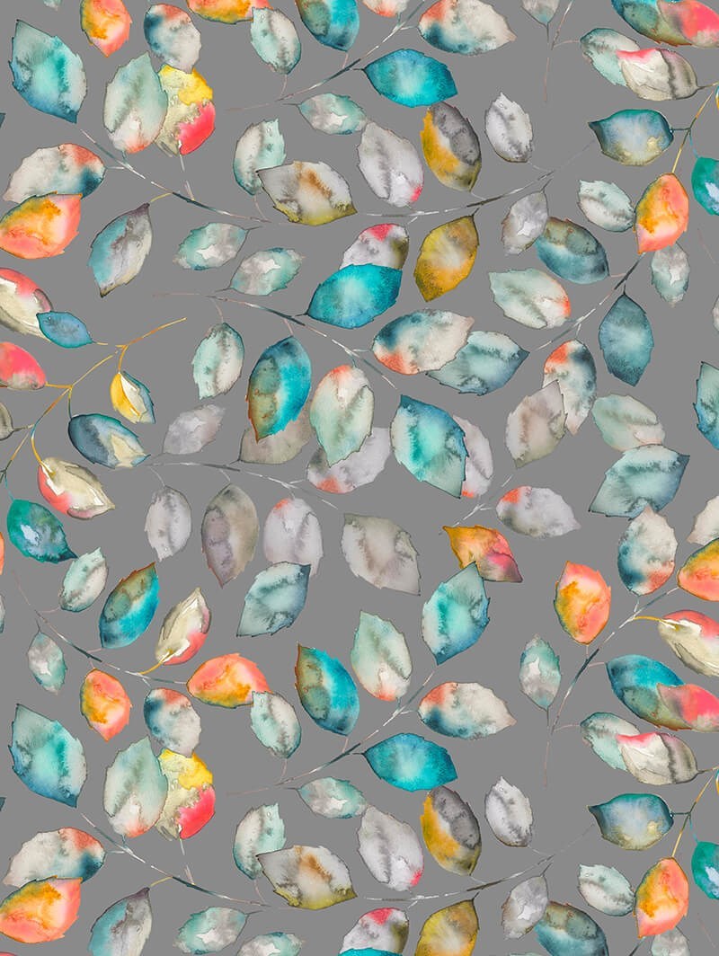 Create the perfect cosy, peaceful space with this beautiful design of watercolour leaf sprigs. Autumnal shades of red, yellow and orange are cooled with serene greys, blues and teals to create a design that can work in any room.