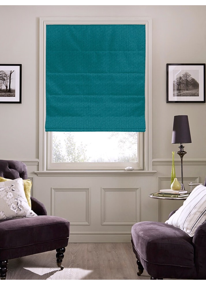 A colour to aid creativity, this teal roman blinds a decadent choice for any window. The rich deep turquoise shade looks great in modern or eclectic rooms designs but also works wonders in a traditionally styled room to add a touch of glamour.