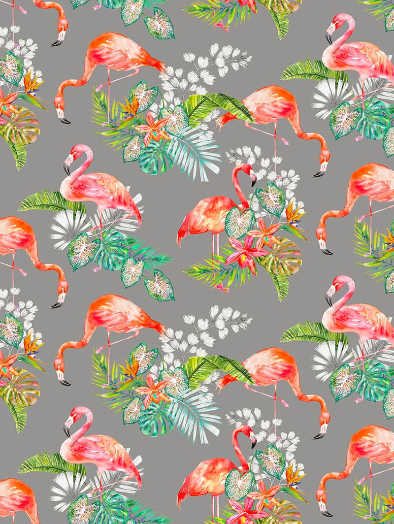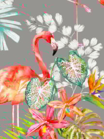 We love this eye catching design of graceful flamingos and jungle foliage, giving the tropical trend a sophisticated spin. The charcoal grey background is the perfect base to make the bright feathers and leaves stand out and grab your attention.