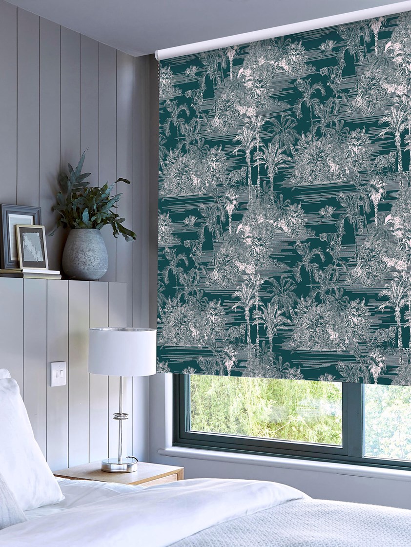 Tropical Toile Teal Roller Blind by Boon & Blake