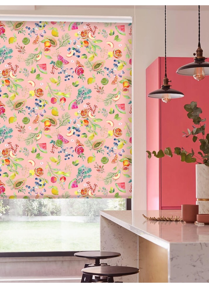 Tutti Frutti Blush Pink Floral Fruit Print Roller Blind