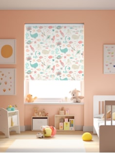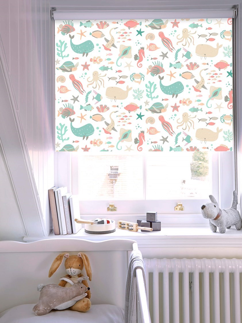 If you want to add a cheery feel to your little one's room this beautiful blind scattered with smiling sea creatures is the perfect choice. We love how the friendly fishy's colours of blue, orange and red contrast with the pale greys to create a stylish, modern children's design.