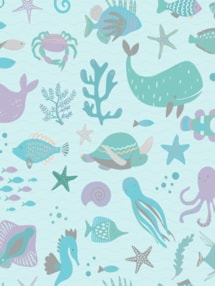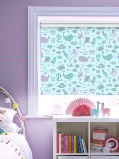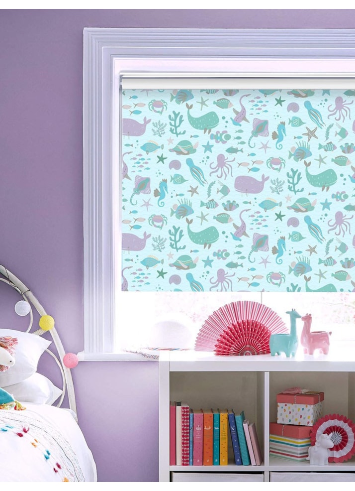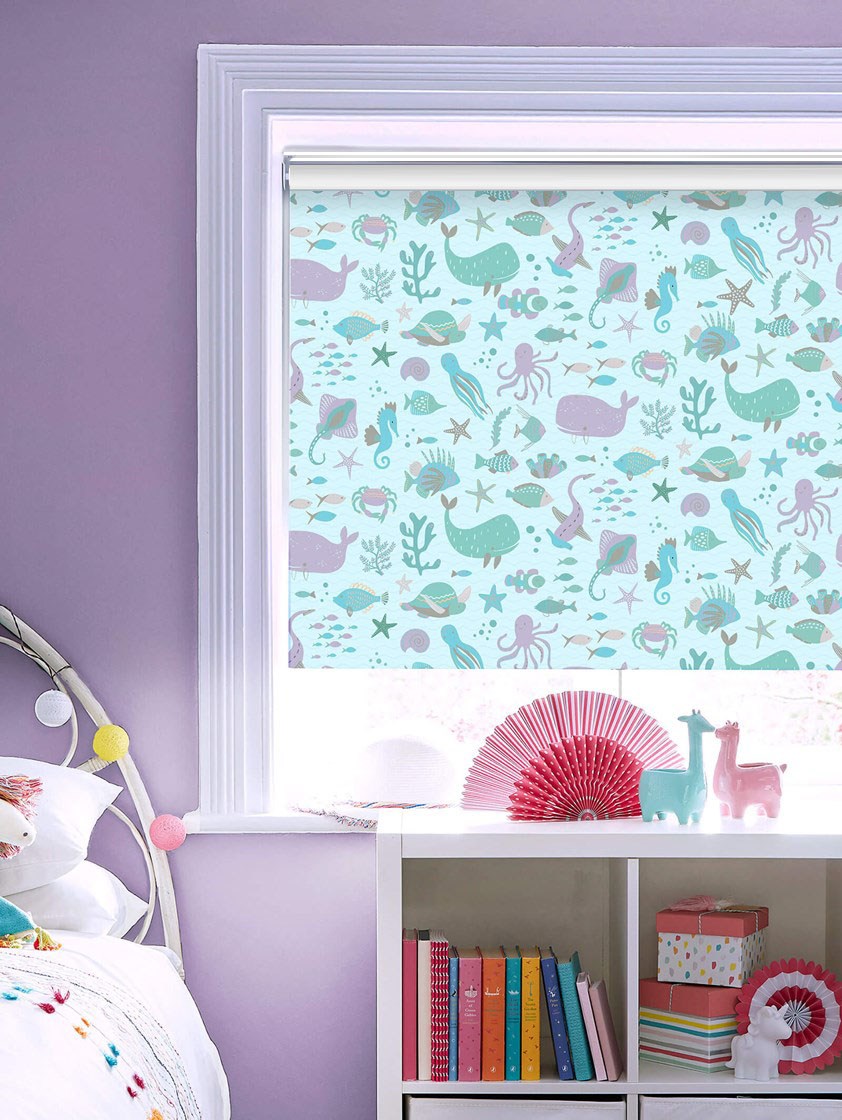 Take your little one into a friendly under the sea world with this beautiful blue blind featuring charming water dwellling creatures in an array of purple, grey and aqua tones. An easy way to bring colour and design to your child's room, simply add blue accessories and fish toys for an instant sea theme!