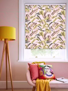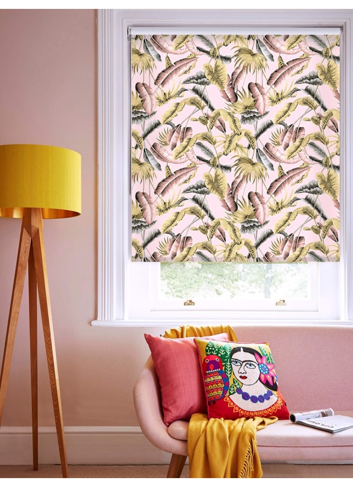 Venezuela Blush Tropical Leaf Roller Blind by Boon & Blake