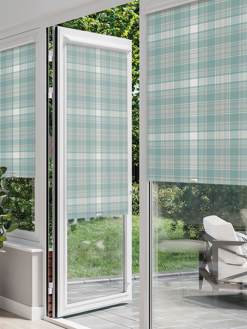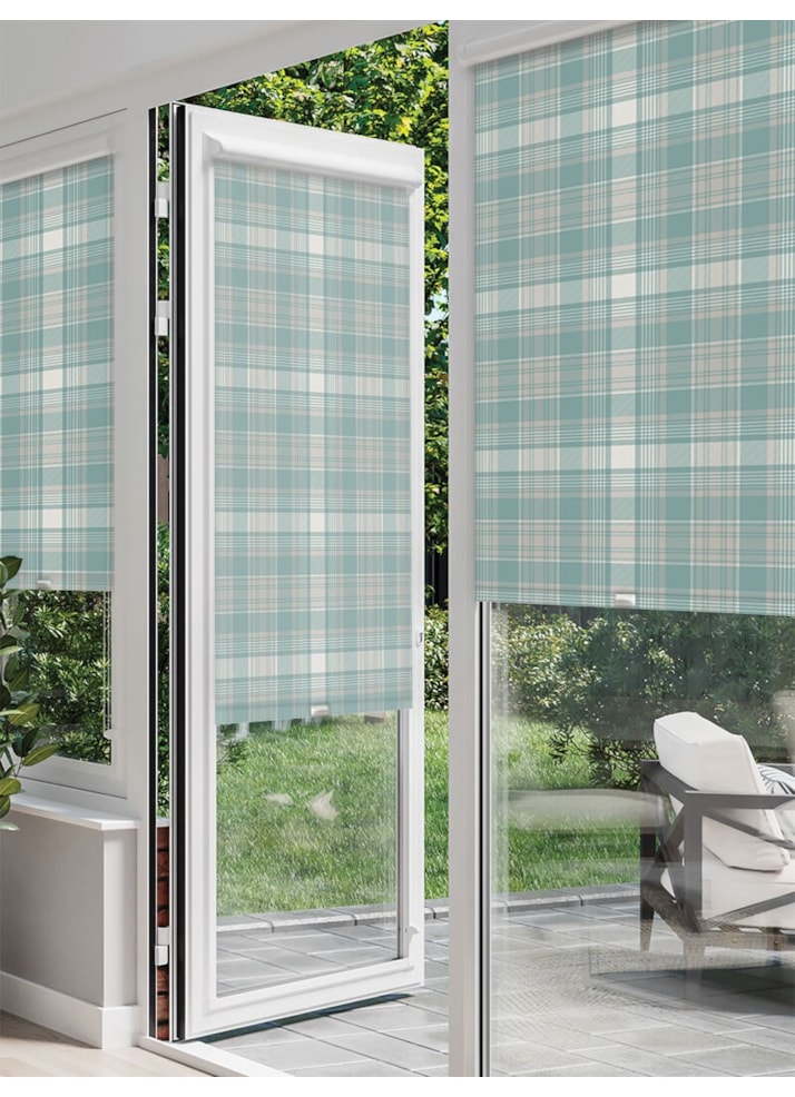 Wallace Check Soft Blue Perfect Fit Roller Blind