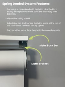 Please Note - This blind does not come with white covers to hide the metal brackets. If you wish for the brackets and top roll to be predominantly hidden, we recommend upgrading to the luxury system which will supply you with a stylish cassette which is installed in the window and the blind itself is placed into.