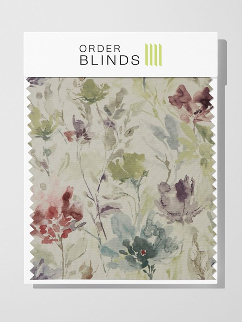 Elevate your living space with the Water Meadow Eucalyptus Roman Blind. Its watercolor flower pattern, with neutral splashes of green, washed-out burgundy reds, and tea blues, adds a touch of tranquillity to your decor. Experience the serene beauty of nature in your home with this elegant and versatile blind.