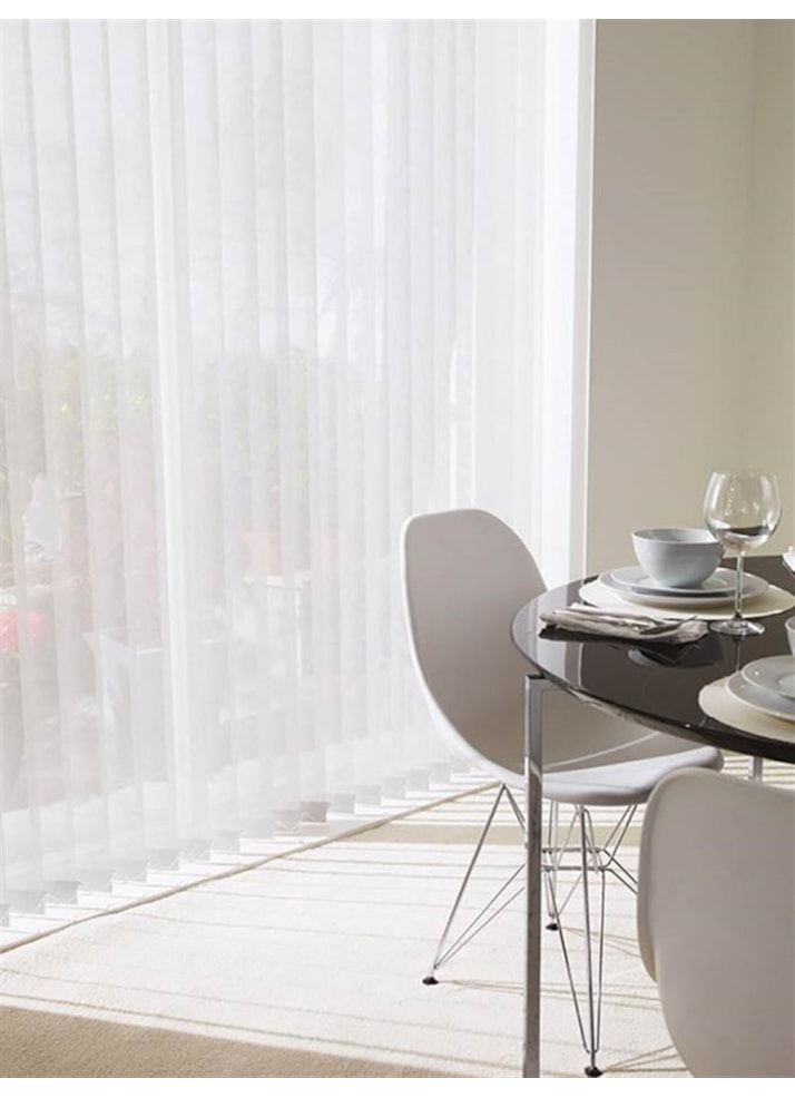 Sheer vertical blinds prevent glare from the sun to create a softer light within your room. Thanks to the see through nature of the material, you can have the blind closed but still maintain your street, window or garden view. These are perfect for windows in living areas where you spend your daytimes in.