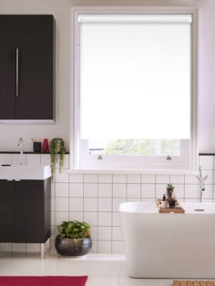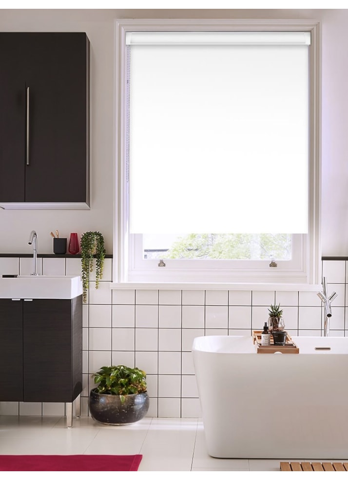 This white waterproof roller blind is an ideal solution for bathrooms, kitchens, or any room with high moisture levels. Crafted from high-quality PVC fabric, it offers a sleek, modern appearance while being highly functional. The material is specifically designed to resist moisture, ensuring the blind remains in pristine condition even in humid environments. Its waterproof properties make it perfect for areas where splashes and condensation are common, providing both privacy and durability.