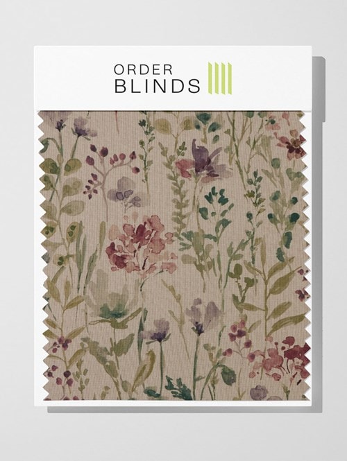 Bring the beauty of nature into your home with our Wild Fields Eucalyptus Roman Blind. This watercolored flowering meadow patterned blind, set against a neutral beige backdrop, adds a touch of serenity and charm to any space. The splashes of rose red and botanical greenhouse greens create a soothing and inviting atmosphere.