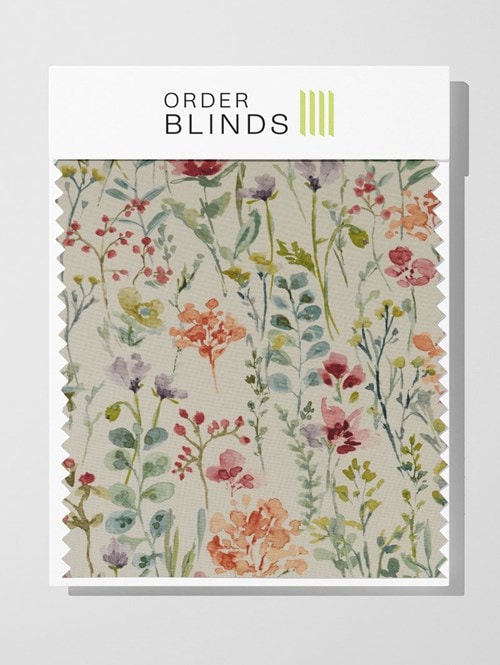 Introducing the Wild Flowers Clementine Roman Blind, a stunning addition to your home decor. This watercolored wild flower pattern, set against a neutral ivory backdrop, features vibrant splashes of orange, teal blue, and botanical greens. Bring the beauty of the outdoors inside while infusing your space with a sense of energy and tranquillity.