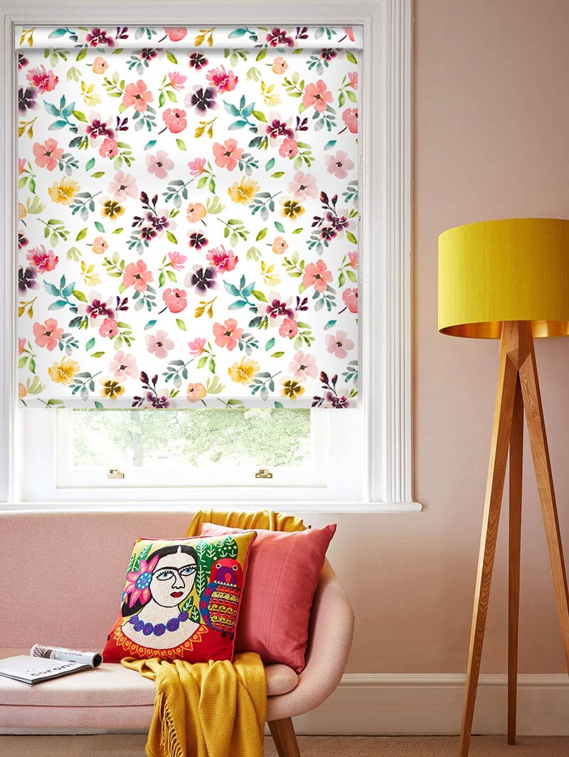 Beautiful summery flowers are scattered over a bright white base on our Wildflower Dawn Floral Grip Fit blind, giving a charming, airy effect. If you love the watercolour trend this is a delightful choice.
