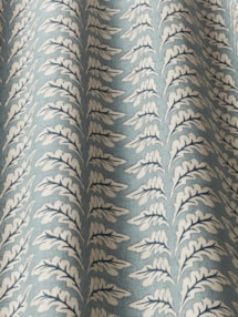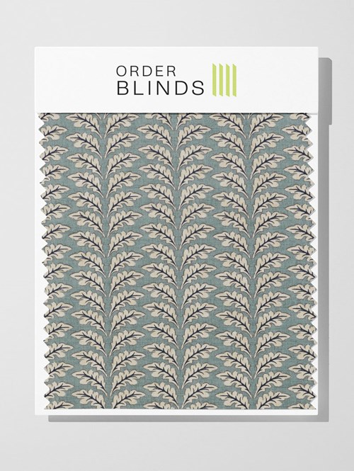 Introduce a serene ambiance to your space with the Woodcote Glacier Roman Blind. The delicate leaf pattern in deep beige complements the moody bluey grey backdrop, creating an elegant yet tranquil atmosphere. Perfect for adding a touch of nature to your home decor.