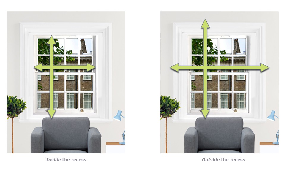 When fitting outside the recess we again work with the smallest measurements to ensure that the blind will fit within the available area.