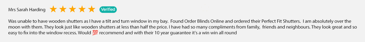 • 10 Year Guarantee - You can rest assured in your investment when buying from Order Blinds. We build our blinds and shutters to last and so offer an amazing, market leading 10 year guarantee to help remove any doubts over whether you're spending your money wisely.